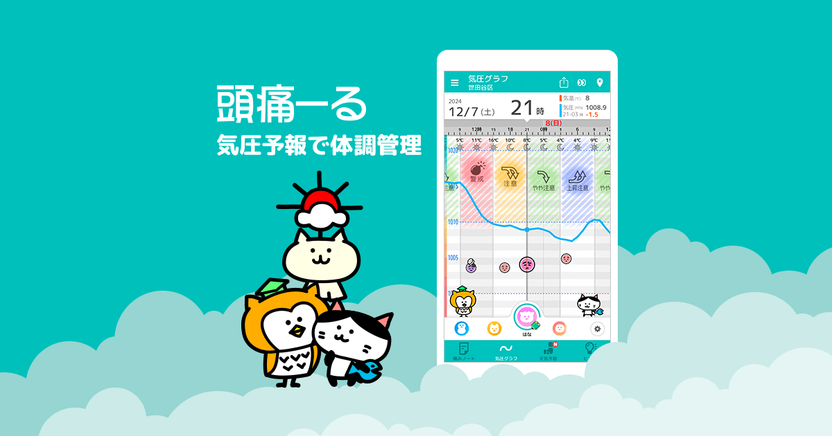 頭が痛い…なんでだ??ってアプリを確認すると爆弾低気圧が来てるのがわかって納得したり、直近でいつ来るかわかるので早めに鎮痛剤飲んだり出来るのでめっちゃ便利です(๑•̀ㅂ•́)و✧