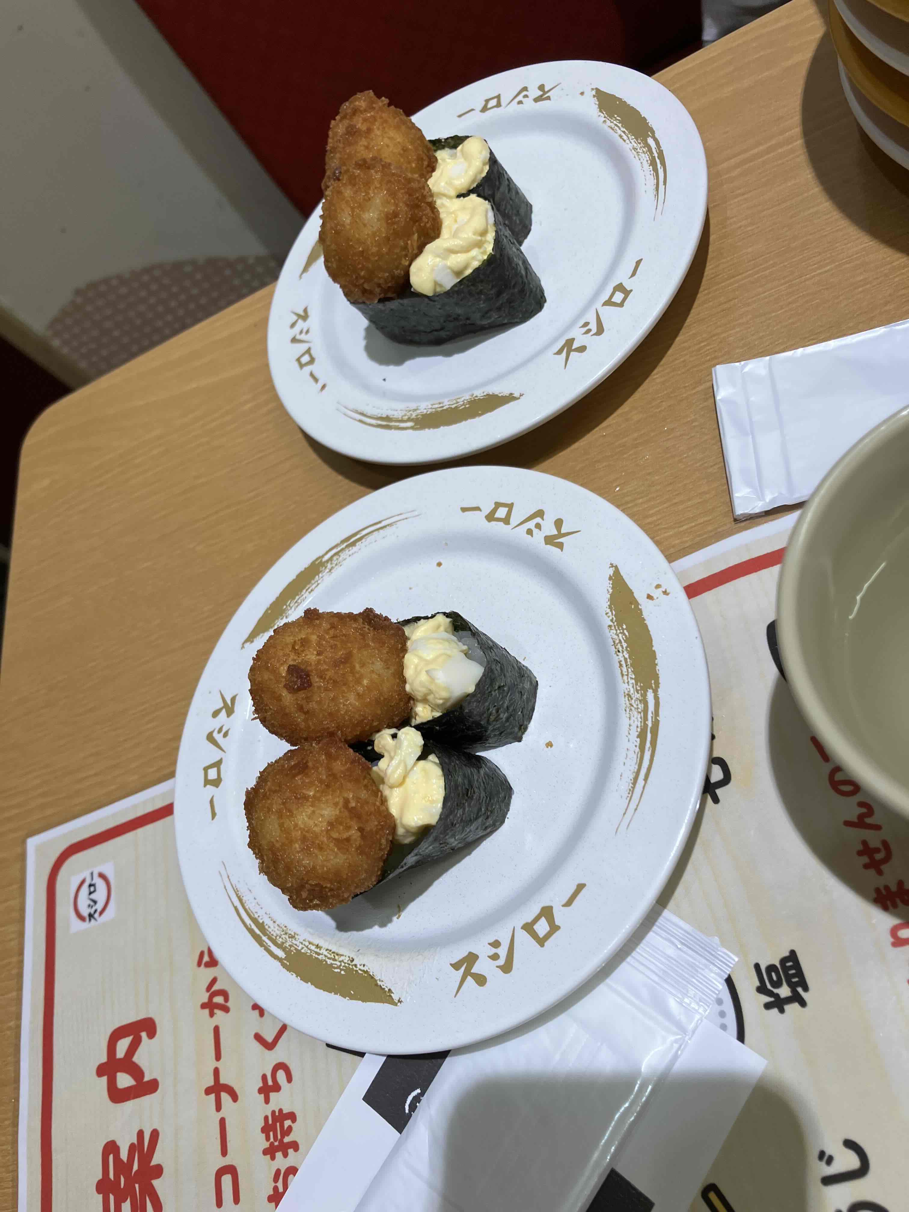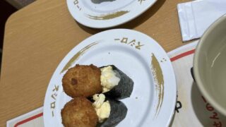 かいじゅうたちの食べる量も増えていってますし、食べるものも多少変化していってます。今回、かいじゅうたちがハマったのは、『うずらフライ軍艦』です。はーちゃんがたまご好きなので、最初に注文し、おいしそうなのを横目に見たあーくんが一つ味見、ゆーくんも気になって食べて、みんなおいしかったの連鎖です。今回家族5人で『うずらフライ軍艦』を10皿も食べました。テーブル上に『うずらフライ軍艦』が3皿もあるという珍しい光景。でもそれくらいおいしかったです。できたてのうずらフライとたまごサラダの組み合わせ、たまご尽くしで、たまご好きにはたまらない一皿。かいじゅうたちもパクパク食べてました。これから必ず食べる一皿になりました。