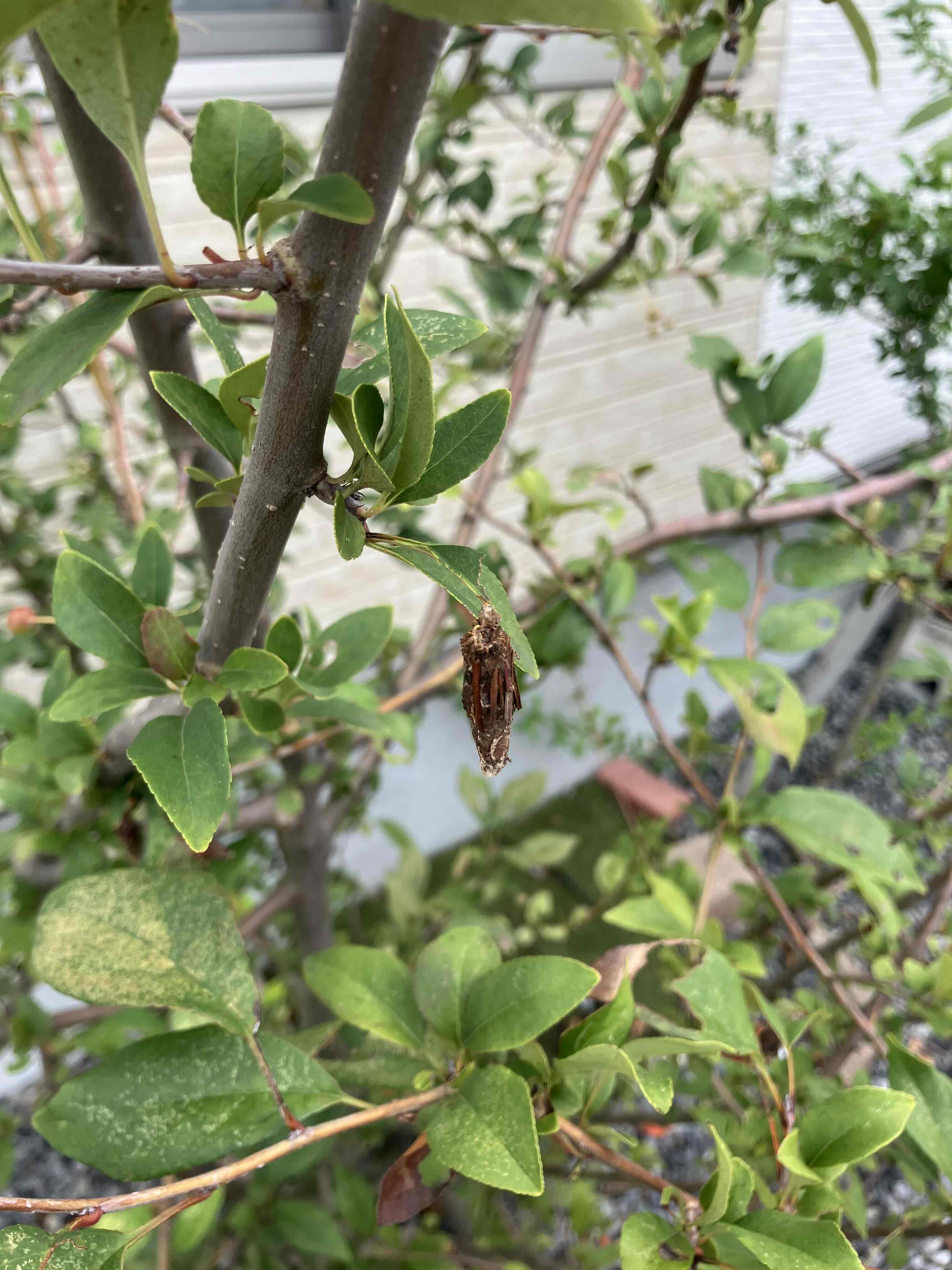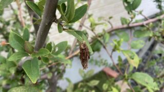 今、幼虫たちが活発に活動して、自分の蓑を作っている時期なんだなとわかりました。我が家の庭の木の葉を食べて大きくなってるんだなと。特に害があるわけでもないので、このまま見守っていこうかなと思います。