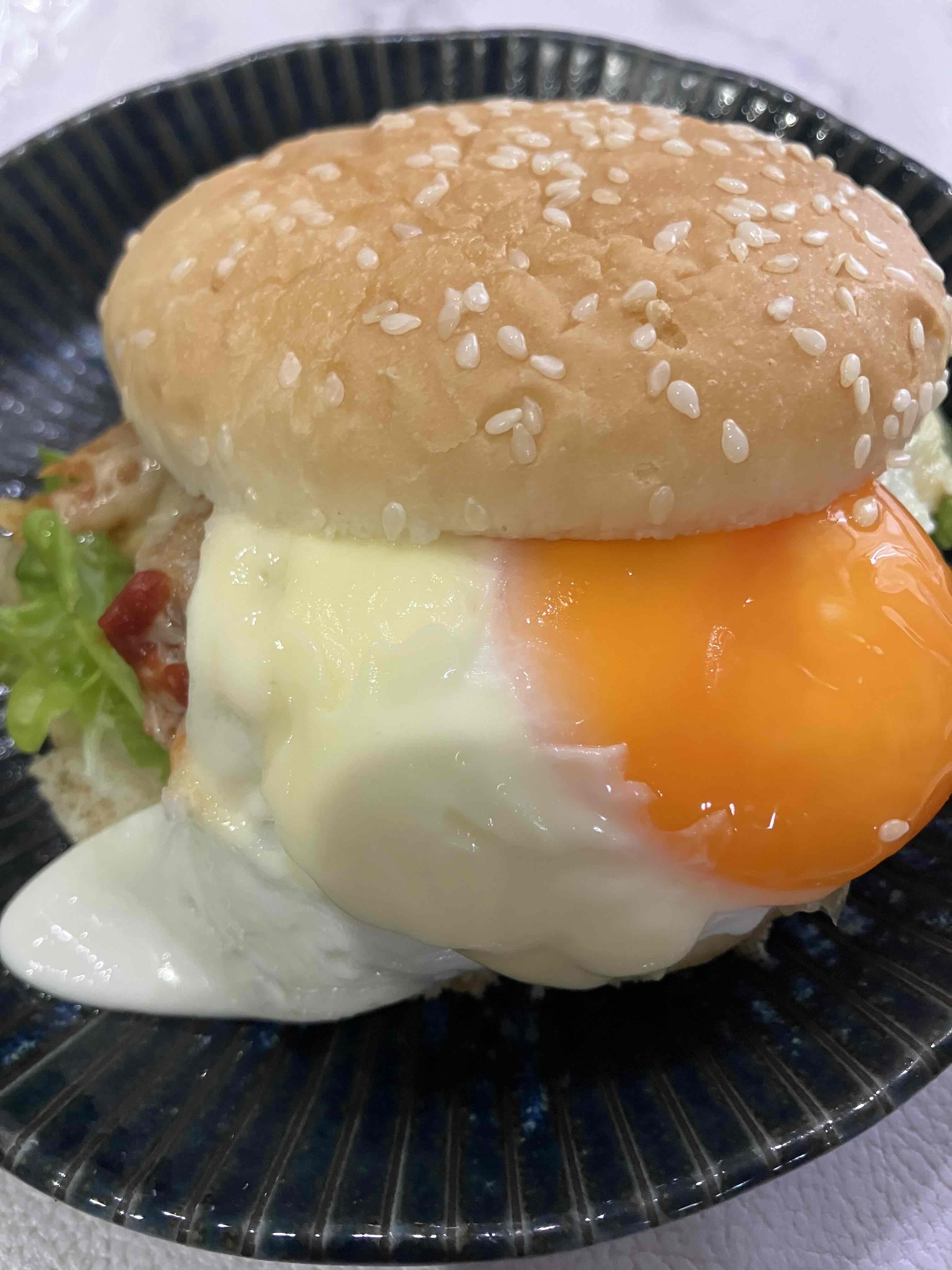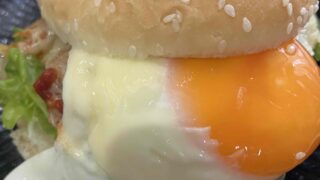 今回作った月見バーガーですが、バンズは既製品です。パティはパパが作りました。ハンバーグのレシピを見ながら少しアレンジして、キノコも入ったヘルシーなパティになります。メインの目玉焼きはママが作ってくれました。半熟加減が食欲をそそるいい感じでした。あとはサラトリオをはさんで、ソースがかかってます。お店のものとは違って、味も濃くないので、我が家のかいじゅうたちも食べやすかったようです。